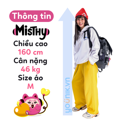 Trong bộ ba sản phẩm áo hoodie, đây là thiết kế dành riêng cho các Mít Con yêu thích sự tối giản, khiêm tốn với hình ảnh. Điểm nổi bật của áo này nằm ở vị trí lưng, chiếc kính mèo phản quang sẽ giúp bạn “trông chừng kẻ xấu”, vậy nên mặc áo sẽ yên tâm lắm nha.