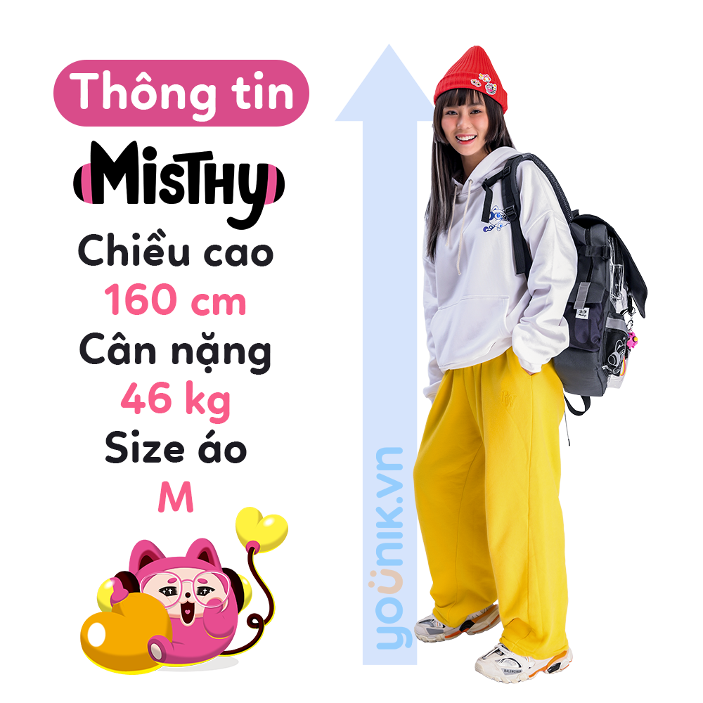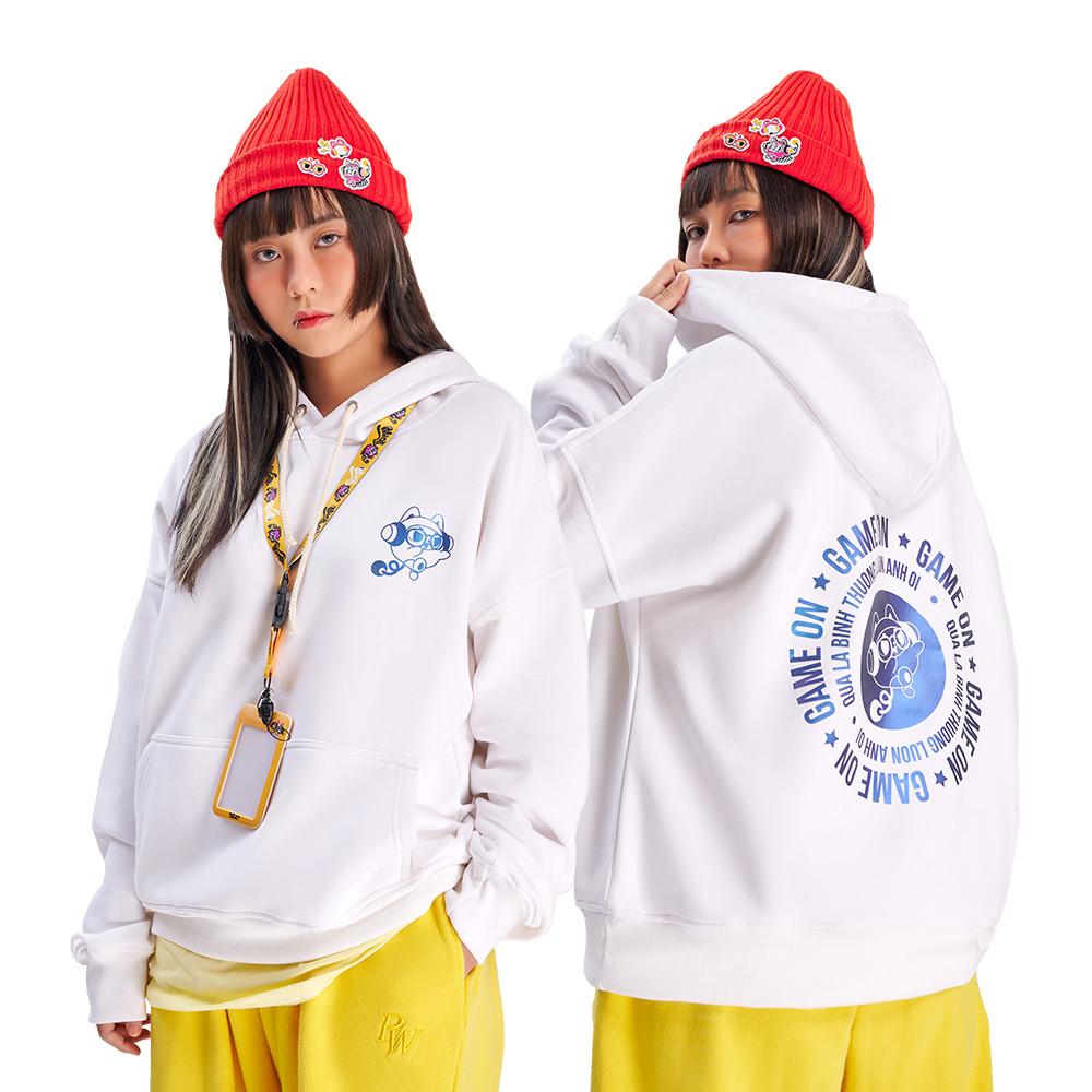 Ngoài áo thun Game Master, Mihi còn xuất hiện trên áo hoodie Game On nữa. Điểm nổi bật của chiếc áo này giữa Vườn Mít chính là câu nói quen thuộc của Misthy, bạn có đoán được là gì không? Đặc biệt hơn, toàn bộ hình ảnh đều được in hologram mềm, chất liệu bền hơn, màu bóng mờ sang hơn.